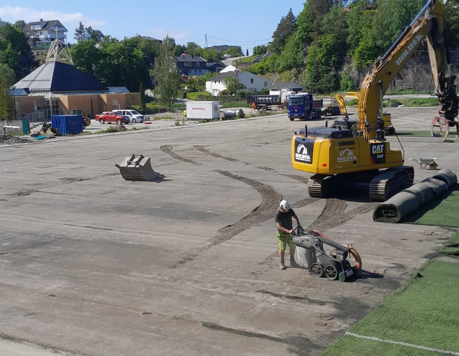 Spilleflate på 60 X 100 m. Banens oppbygging ble fjernet og erstattet med nye, velsorterte løsmasselag og avsluttet med drensasfalt. Drens- og overvannssystem ble revet og det ble etablert nytt. Nytt flomlysanlegg med LED armaturer og etablering av nytt kunstgressdekke.